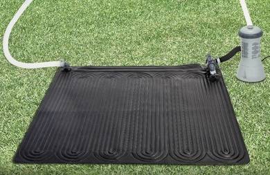 Solární panel můžete umístit na vodorovnou zem, či mírně nakloněnou, se sklonem na jih, aby se co nejlépe využilo sluneční záření. Působením slunečního záření se ohřívá voda v ohřevu a pomáhá tak zvyšovat teplotu vody v bazénu. Rozměry ohřevu jsou 1,2x1,2 m.