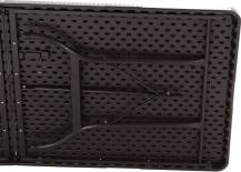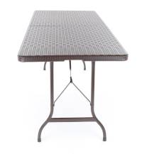 Stůl je zhotoven z ocelových profilů povrchově dokončena komaxitovou barvou, deska stolu je v imitaci umělého ratanu z lisovaného plastu s UV filtrem.