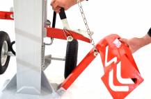 Štípačka VARI 18 TON SUPER FORCE splňuje novou normu EU pro bezpečnost práce. Ke standardnímu obouručnímu ovládání tak přibylo nové, větší ochranné rameno a transportní kolo u vodicích rukojetí pro snadný převoz štípačky. Levá ovládací páka je vybavená zařízením pro zajištění stability polena.