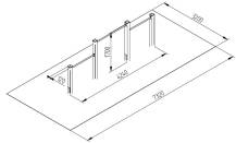 Pro zajištění bezpečnosti doporučujeme instalaci na tlumící povrch dle normy ČSN EN 1176. Vhodné materiály zahrnují kačírek, dřevní štěpku nebo pryžové desky s odpovídající tlumicí schopností. Minimální nutná dopadová plocha pod hrazdami je  21 m².
