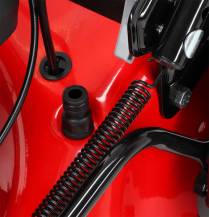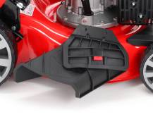 Velká zadní pojezdová kola i přední kola jsou uložena v oboustraných kuličkových ložiscích, centrální nastavení výšky sečení je u značky VeGA také samozřejmostí, jako ergonomické měkčené madlo.