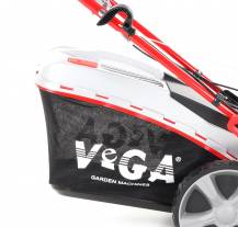 Velká zadní pojezdová kola i přední kola jsou uložena v oboustraných kuličkových ložiscích, centrální nastavení výšky sečení je u značky VeGA také samozřejmostí.
