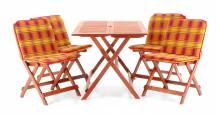 Luxusní zahradní nábytek VeGA SET 4 - je vyroben z tmavě červeného meranti . Meranti je označení pro více druhů dřevin z rodu Shorea pocházejících z jihovýchodní Asie. Meranti je nejžádanějším z tropických materiálů na výrobu zahradního nábytku. Tato dřevina našla své uplatnění jak v interiéru pro svůj dekorativní vzhled ( má unikátní červenohnědou barvu díky které na každém kusu nábytku dokonale vynikne kresba dřeva) , ale především v exteriéru na výrobu zahradního nábytku, oken a dveří pro svoji vynikající trvanlivost , dlouhou životnost , vysokou tvrdost a dobrou opracovatelnost.